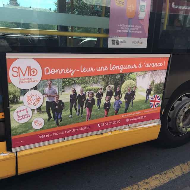 En même temps qu’une campagne dans le quotidien régional, les habitants de Blois ont vu fleurir ce beau message sur les bus de la ville. Ça c’est de la bonne com !